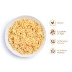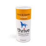 Thrive Kind and Gentle Chicken and Rice is a convenient 800g pack that makes the equivalent of 8 x 400g cans of dog food by simply adding water! This food is made from Italian rice and chicken breast. supplemented with dried algal oil. rich in marine algae and omega-3 fatty acids. along with all the necessary vitamins and minerals for your dog to flourish. Whether your dog has a sensitive stomach or just has fussy preferences. this food is the perfect option for them to enjoy a delicious and nutritious meal.