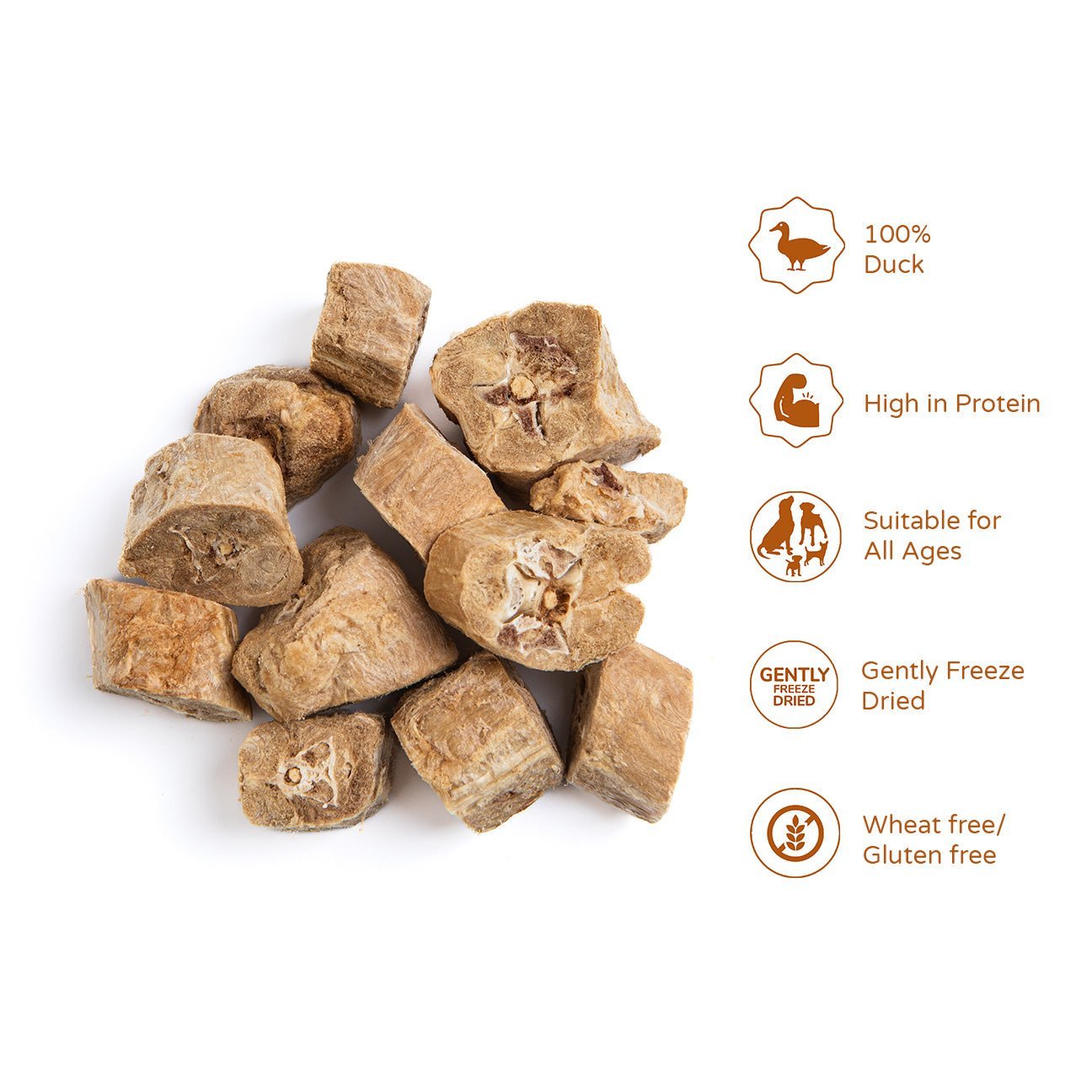 These 100% pure and natural treats contain nothing but 100% freeze-dried duck necks. Duck necks are high in calcium and are great for dogs with sensitive tummies. as they are completely free of derivatives. preservatives. and other questionable ingredients. With their intense flavour. duck necks help your dog to focus on you!